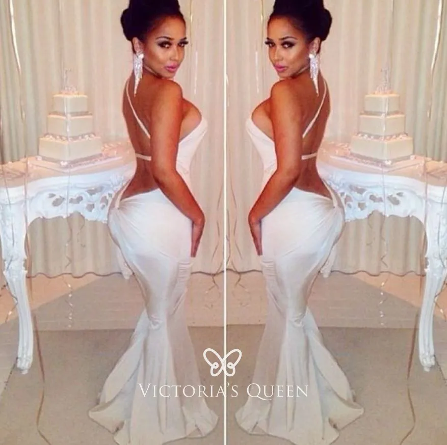 Sexy Backless Beige Nude Jersey Mermaid Evening Dress