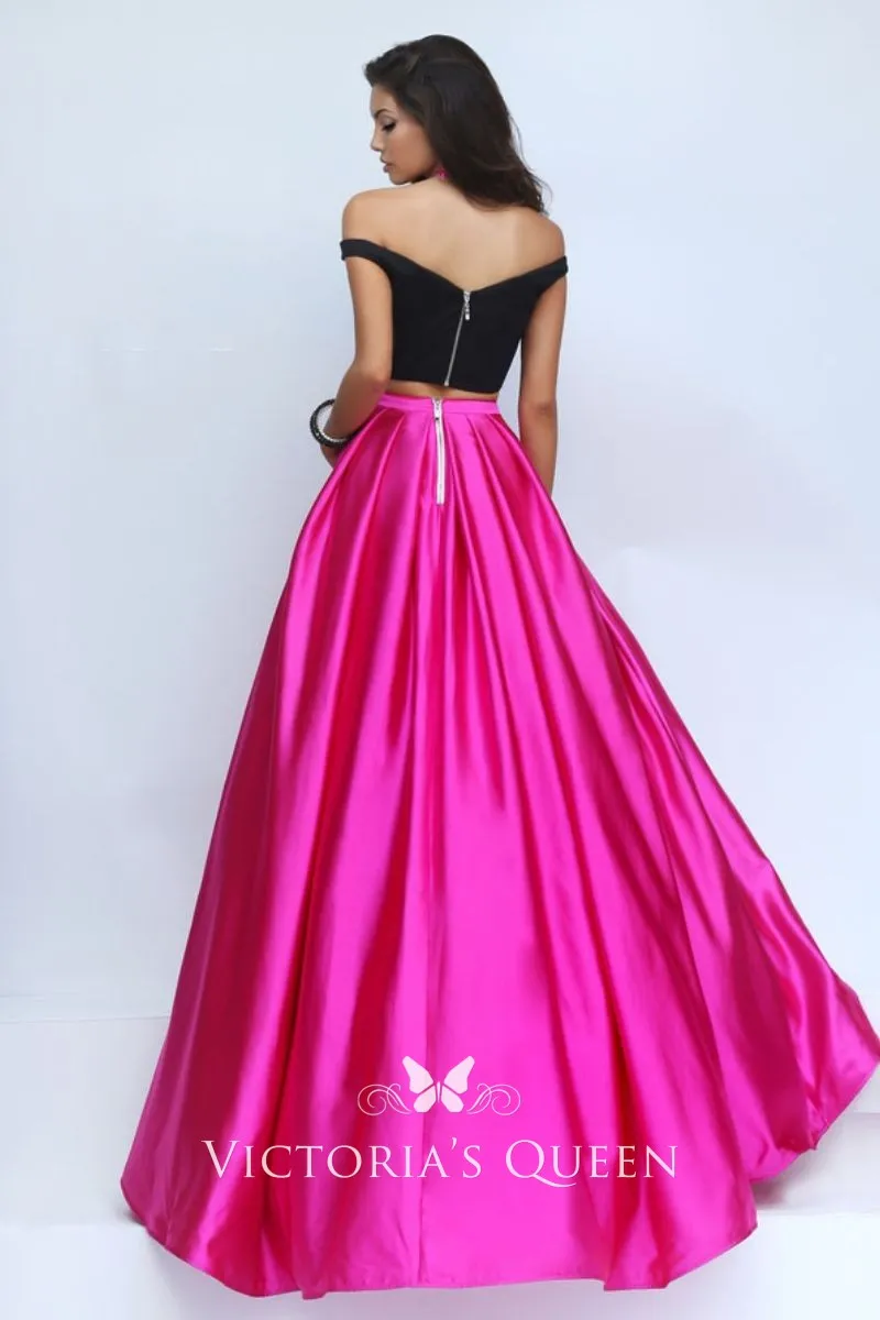 Black and Fuchsia Two-piece Off-the-shoulder Ball Gown