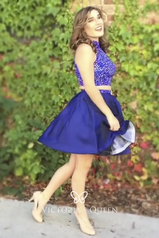 Diamond Bluish Purple Two-piece Short Cocktail Dress