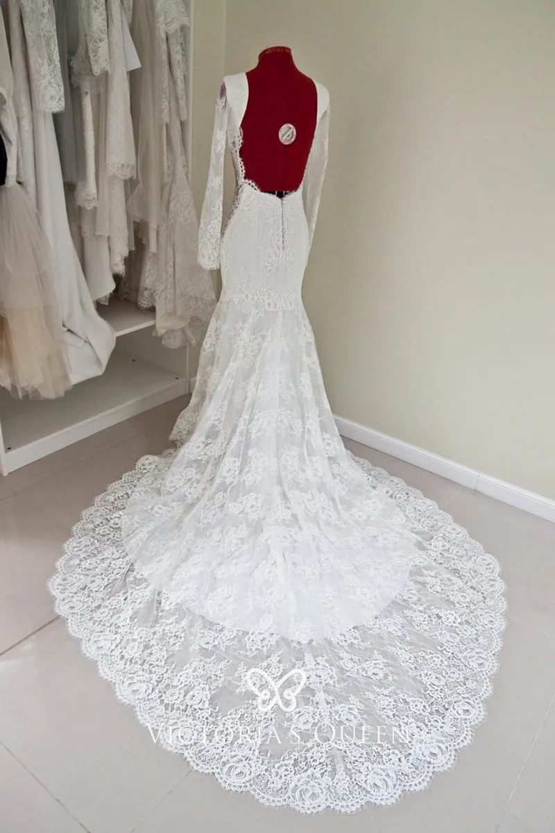 Illusion Long Sleeves Vintage Lace Mermaid Bridal Dress