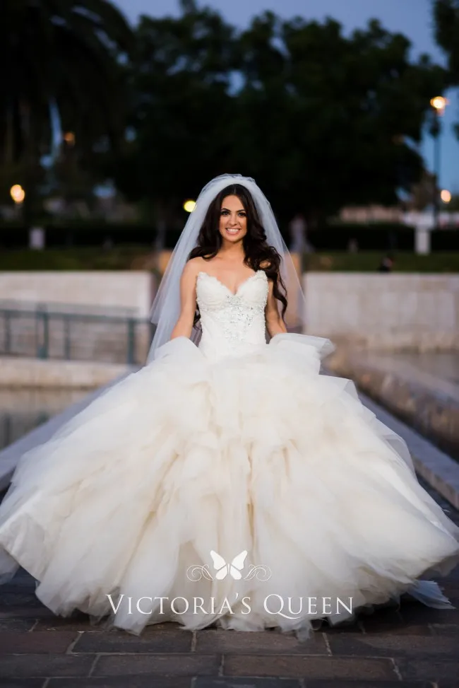 Strapless V-neck Layered Tulle Princess Bridal Ball Gown