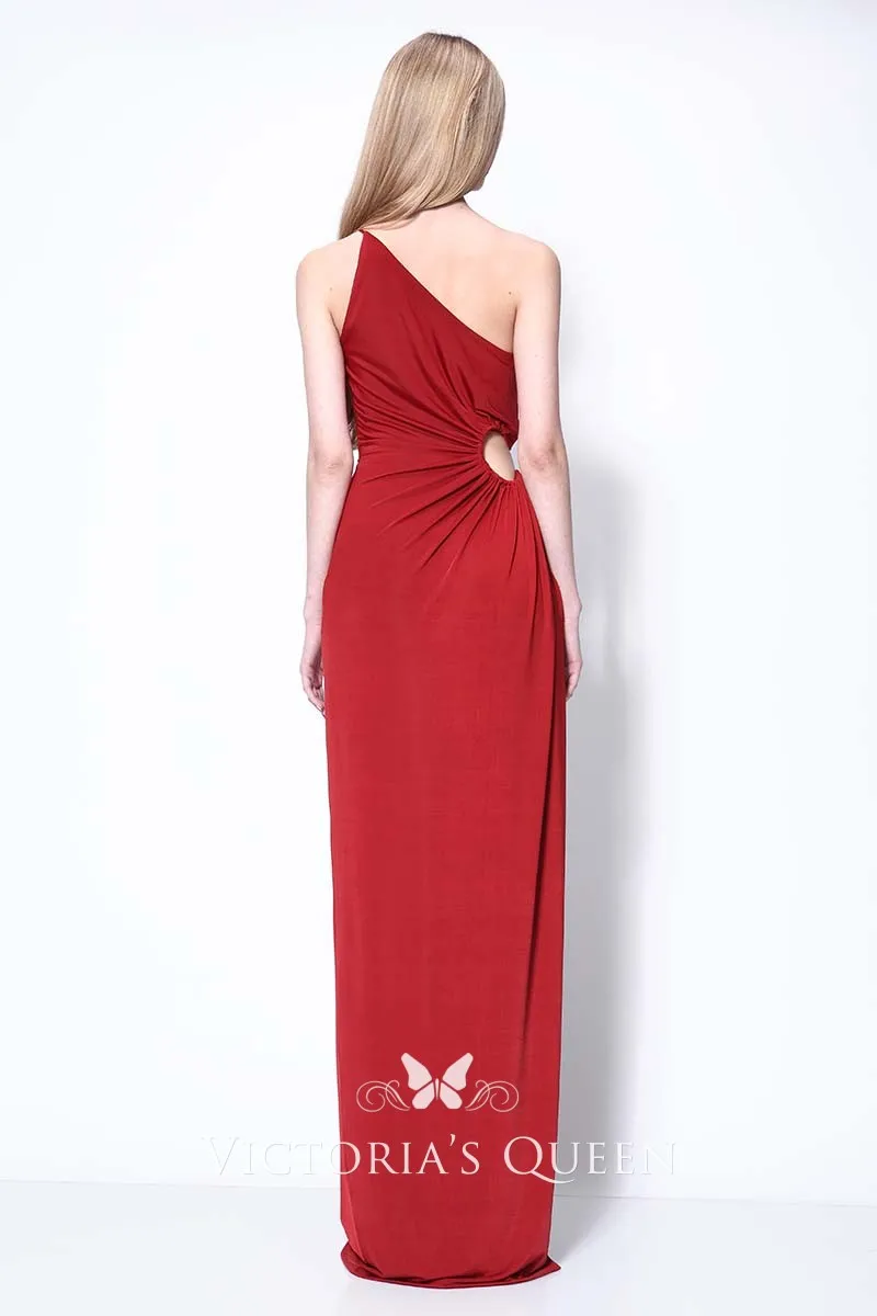 Megan Fox Burgundy One Shoulder Side Draped Prom Dress