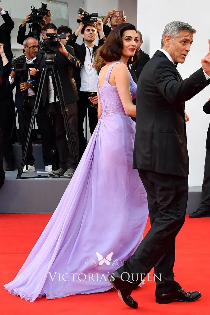 Pleated Lavender Chiffon Prom Dress Amal Clooney