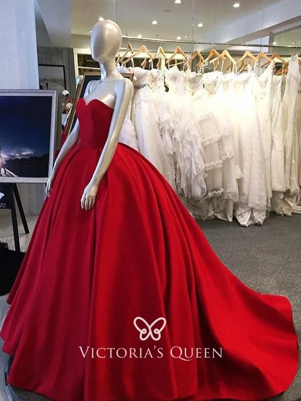 Timeless Red Satin Strapless Sweetheart Ball Gown Prom Dress