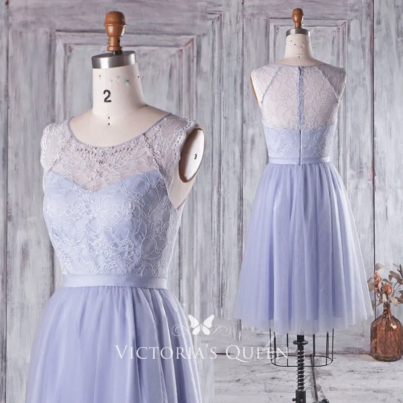 Short Lavender Lace and Tulle Illusion Bridesmaid Dress