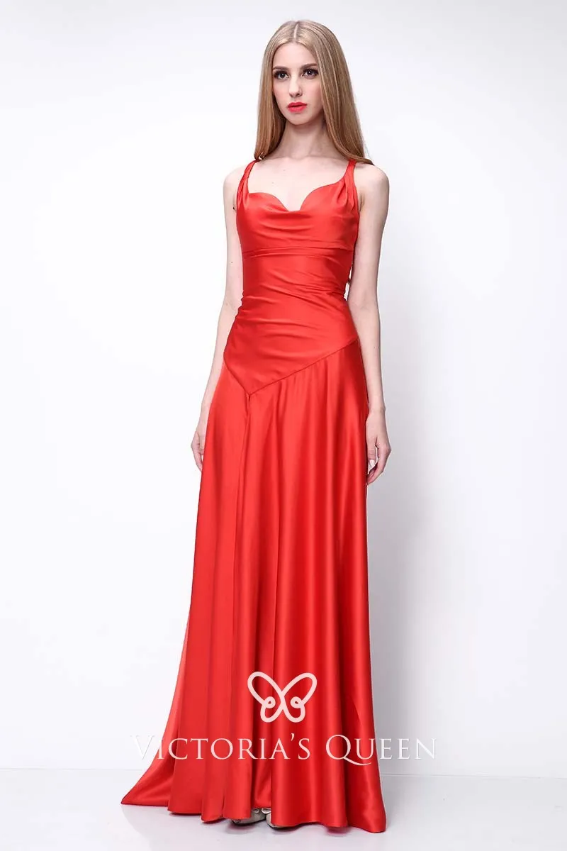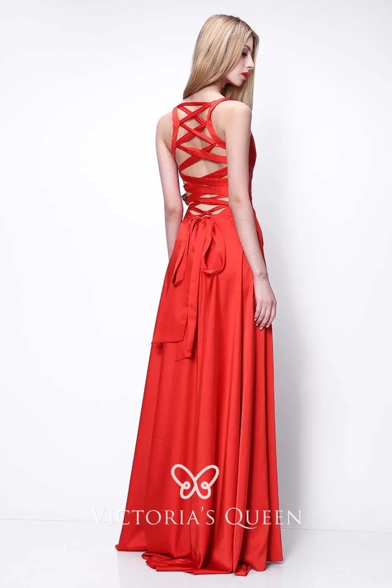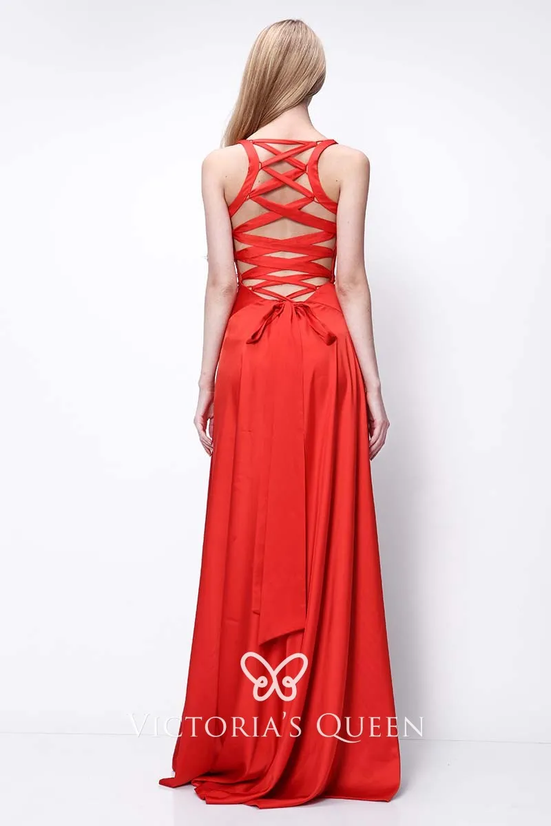 Sleeveless Red Satin Evening Gown Caterina Murin