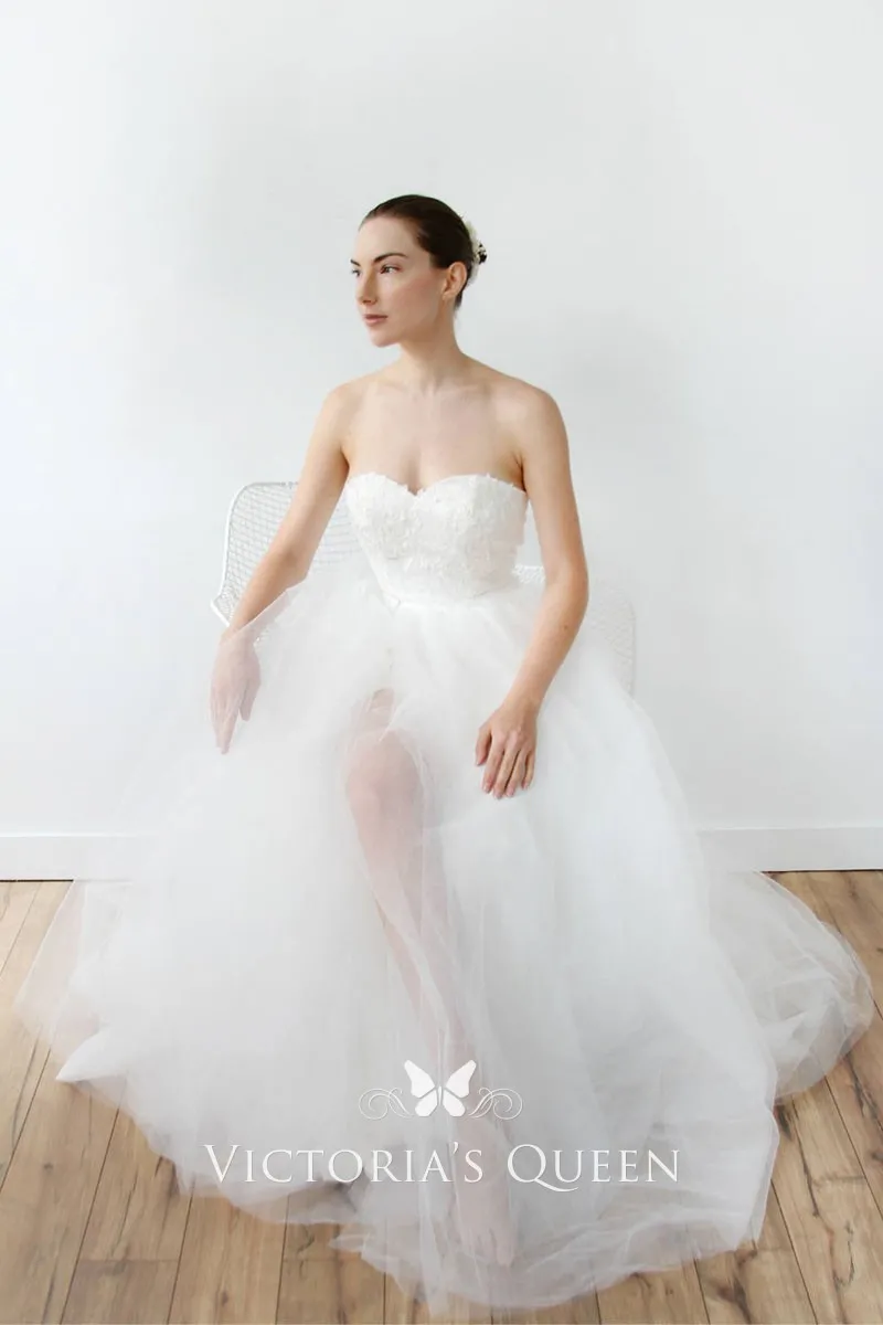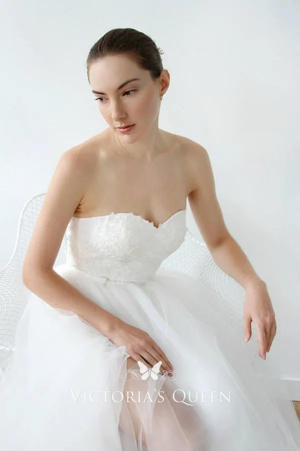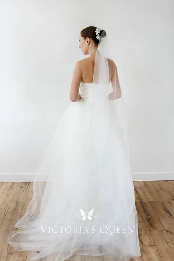 Strapless Sweetheart White Tulle Simple Wedding Dress