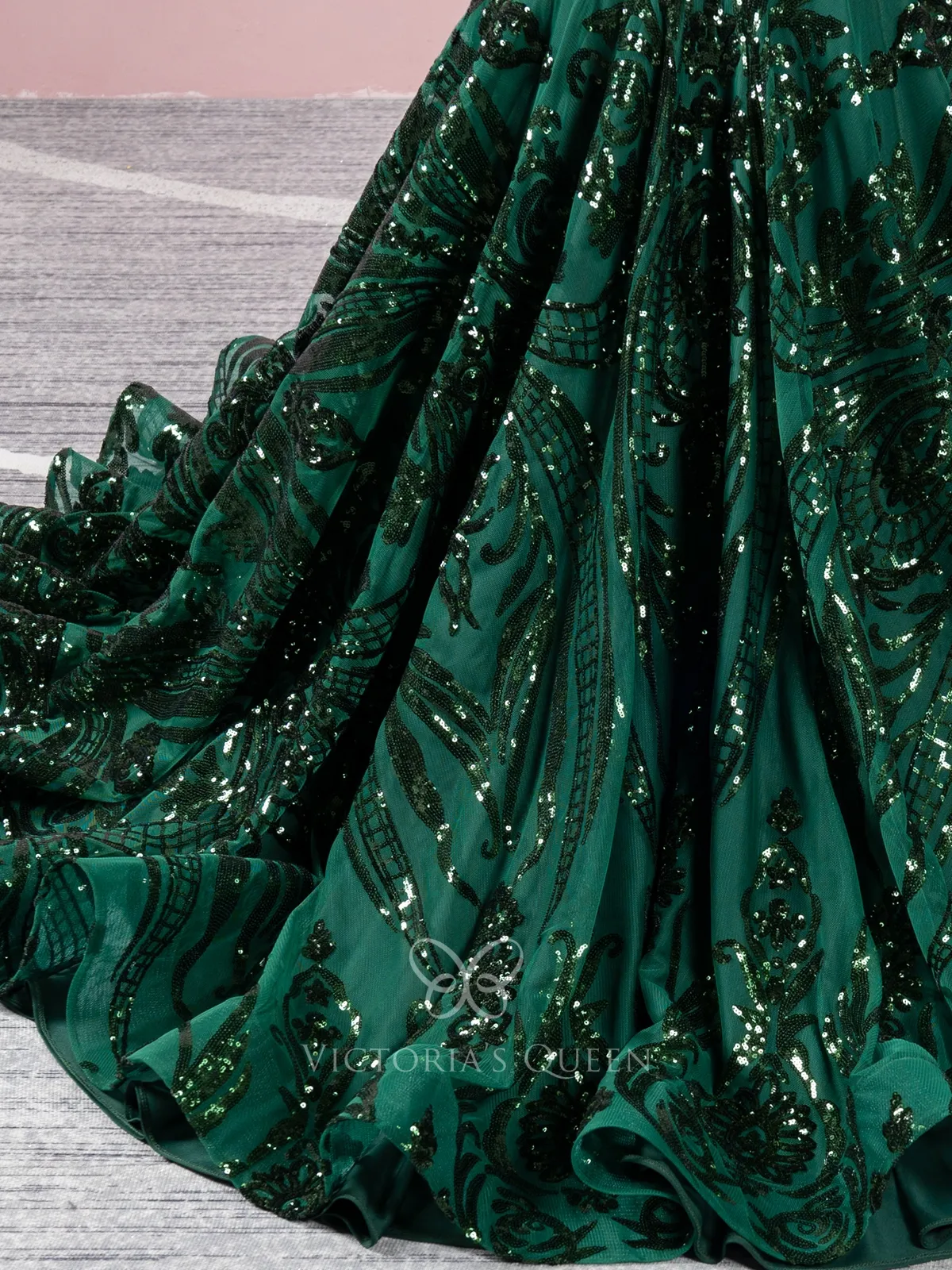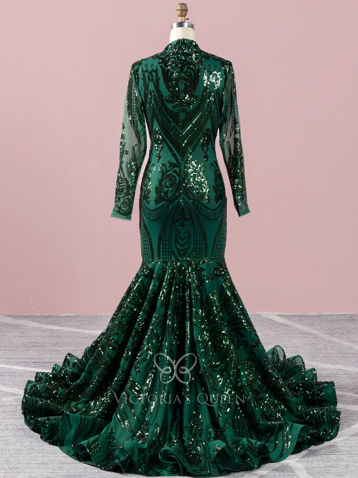 VQ Unique Geometry Pattern Sequin Long Sleeve Mermaid Prom Dress