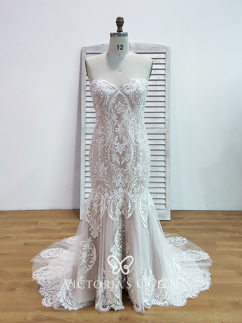 VQ Ivory Lace Overlaid Nude Lining Strapless Weding Dress